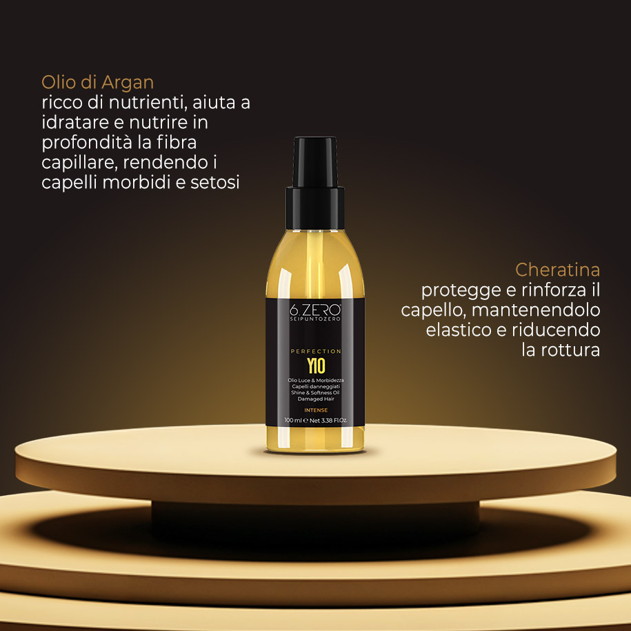 Perfection Y10 è l’olio ideale per capelli danneggiati, con un effetto ristrutturante e districante.